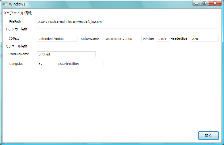 XMファイルのフォーマットをすっかり忘れているので、C#の勉強もかねて設定情報を表示するウィンドウを作成中。
